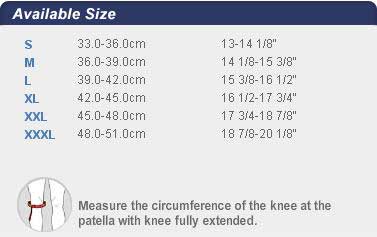 اگر بر روی کشکک پا دست بکشید متوجه میشوید که زیر کشکک پا خالی است اندازه دور زانو را در حالتی که پا کشیده است از زیر کشکک اندازه بگیرید و طبق جدول زیر سایز زانوبند مورد نظرتان را انتخاب نمایید.