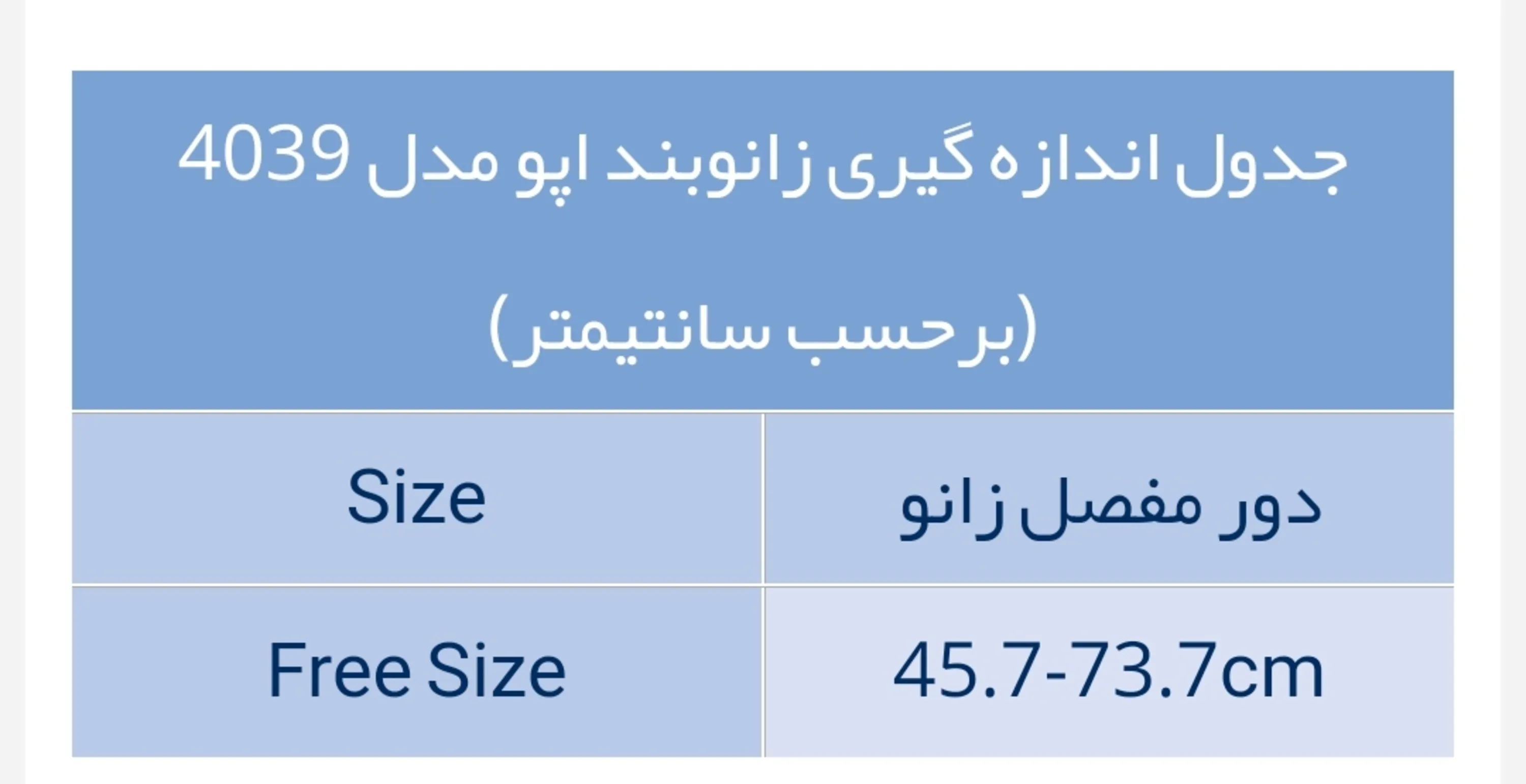این زانوبند Free size است. برای پا با اندازه دور زانوی بین 43.2 تا 71.1 سانتی متر.