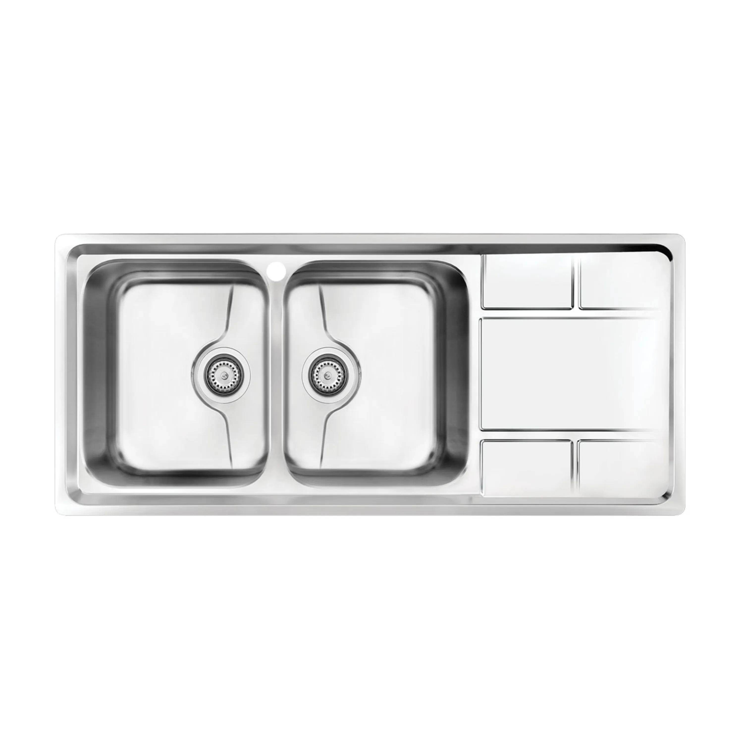 این سینک، نوعی سینک توکار فانتزی همراه با دو لگن و یک سیفون معمولی است که هر یک عمقی در حدود 20 سانتیمتر دارد. اگر شما هم از آن دسته افرادی هستید که به کرات به آشپزخانه مراجعه میکنید و از سینک ظرفشویی به وفور استفاده میکنید، سینک توکار گوفر مدل مارون Maron-301 گزینه مناسبی برای شماست. سینک توکار مارون مدل 301 به شما این امکان را میدهد تا در یک لگن، ظروف خود را به راحتی بشویید و با قرار دادن آنها در لگن کناری، ظروف را آبکشی کنید و یا یک لگن را مخصوص شستشوی سبزیجات قراردهید و دیگری را ویژه میوهجات.