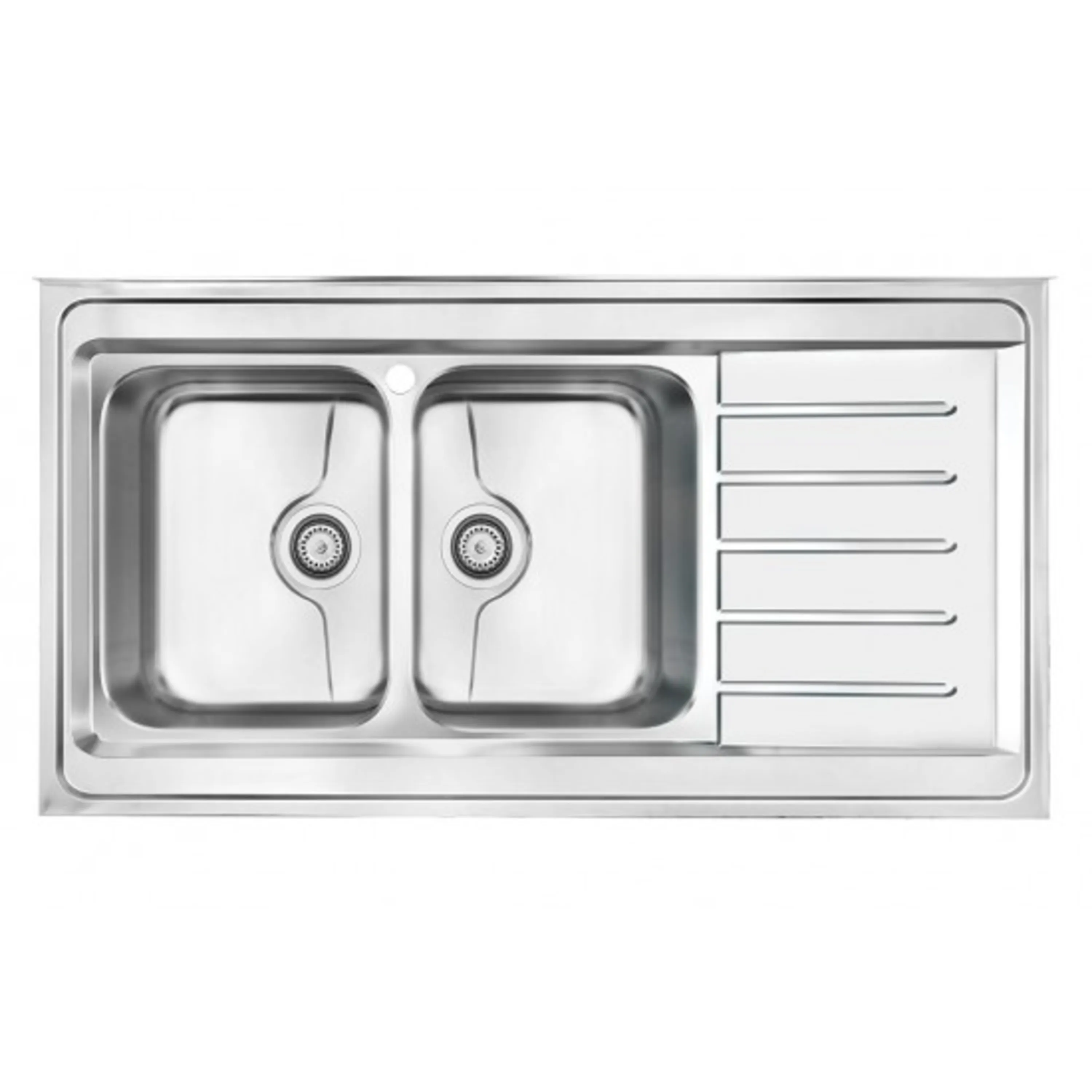 سینک ظرفشویی کن Can مدل 9072P رنگ استیل از نوع سینکهای گروه روکار می باشد . طول سینک 120 و عرض آن 60 سانتیمتر دارای 2 لگن است .
