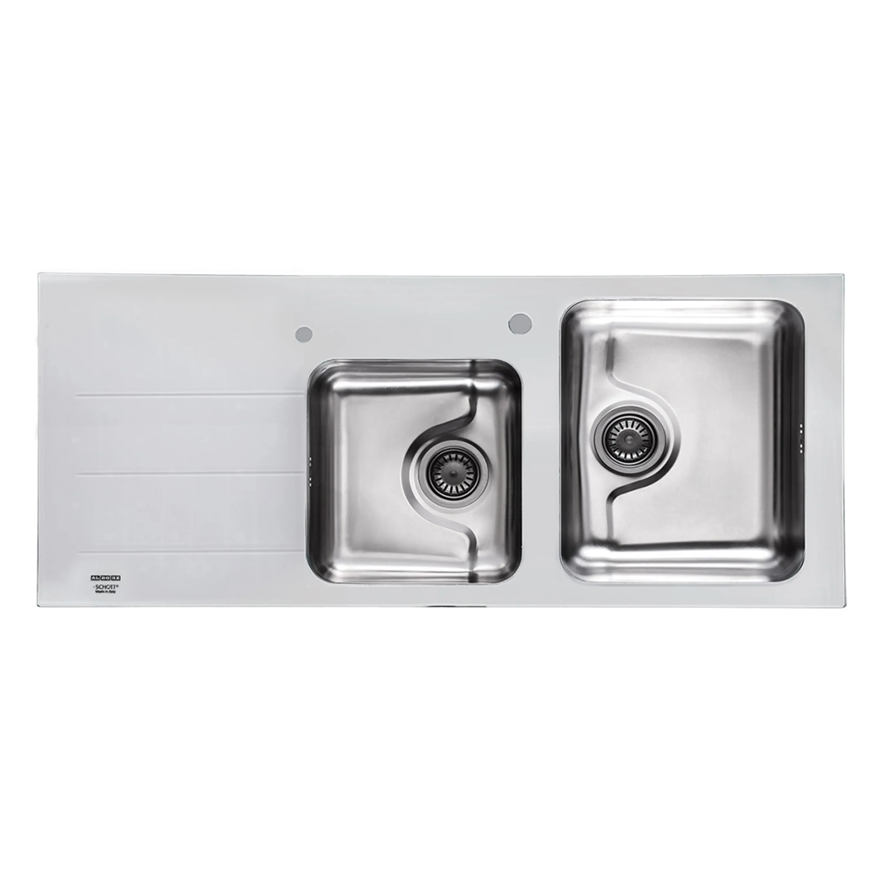 سینک استیل البرز مدل کریستال سفید به همراه جا مایع برای استحکام بیشتر زیر شیشه این محصول تماما ورق استیل استفاده گردیده شده است