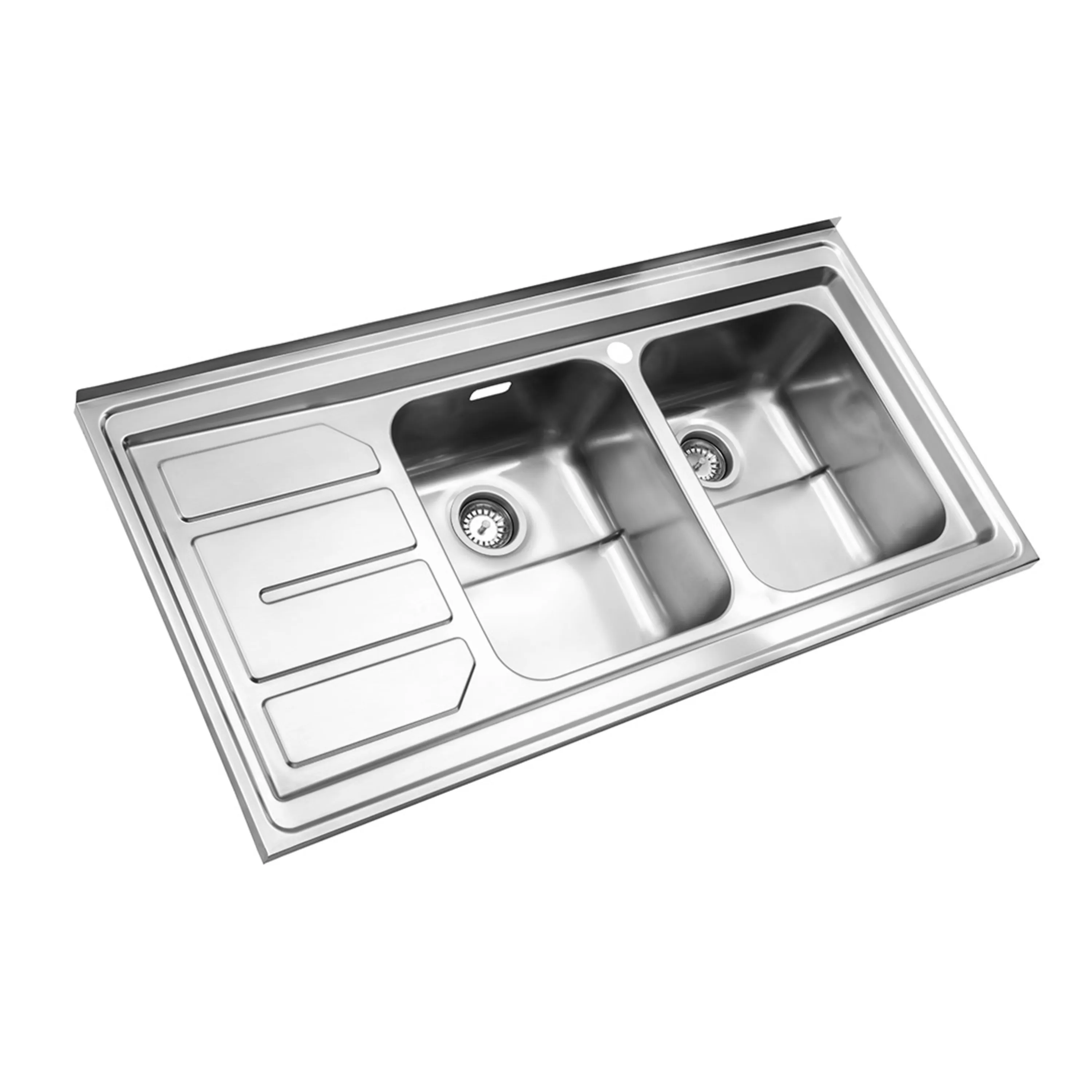 سینک استیل البرز مدل 763 روکار.توکار این محصول دارای لگنهای عمیق که شستشو را آسان کرده و ظروف بیشتری را در خود جای میدهند. همچنین مانع از پاشیده شدن قطرههای آب به بیرون سینک میشوند.