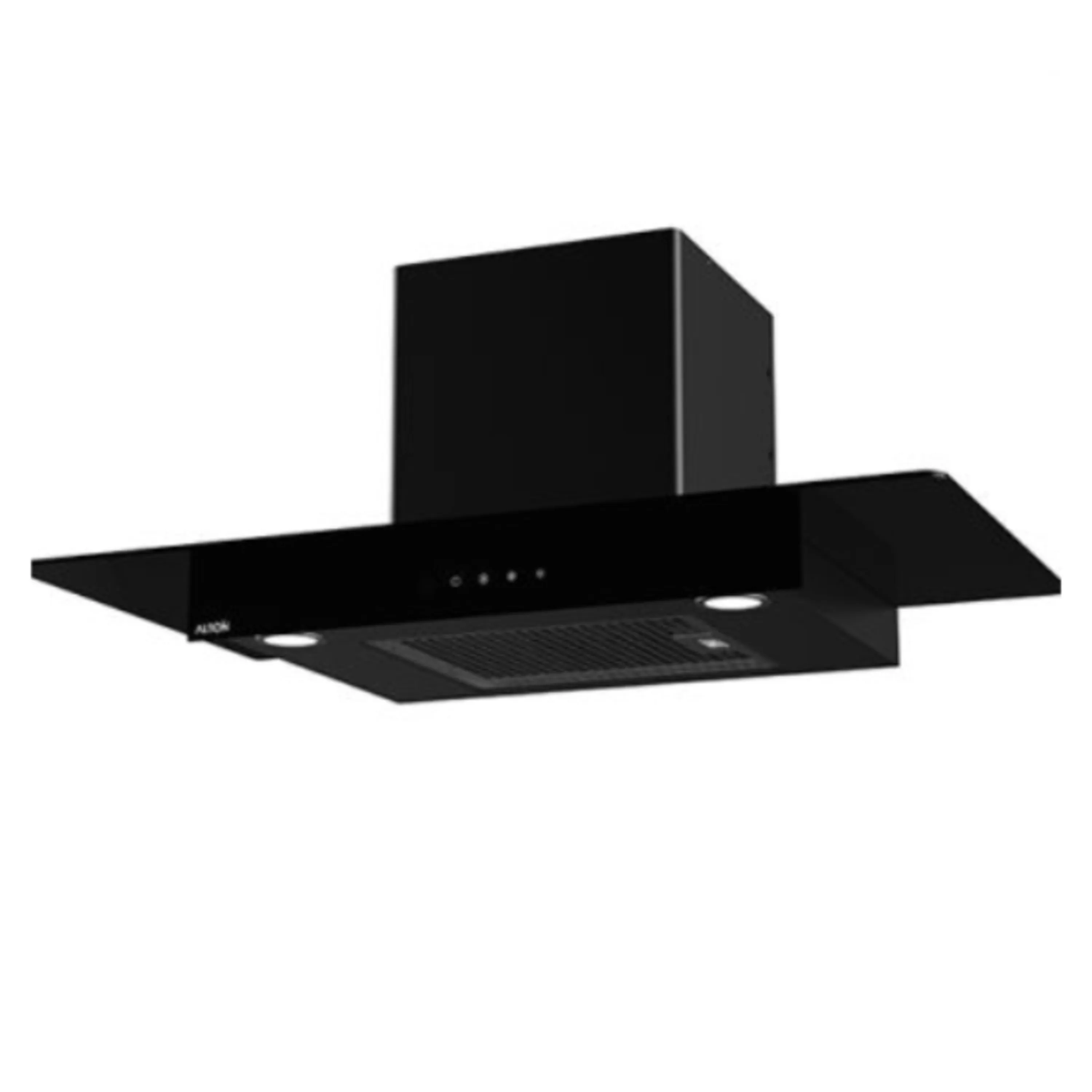 هود شومینه ای H204 در ابعاد 90 سانتی متر با نمای شیشه مشکی ، دارای کلید لمسی ، سنسور حرارت و دما و موتور فلزی 4 دور پر قدرت سوپرسایلنت و قدرت مکش 900 متر مکعب در ساعت تولید شرکت آلتون alton می باشد .