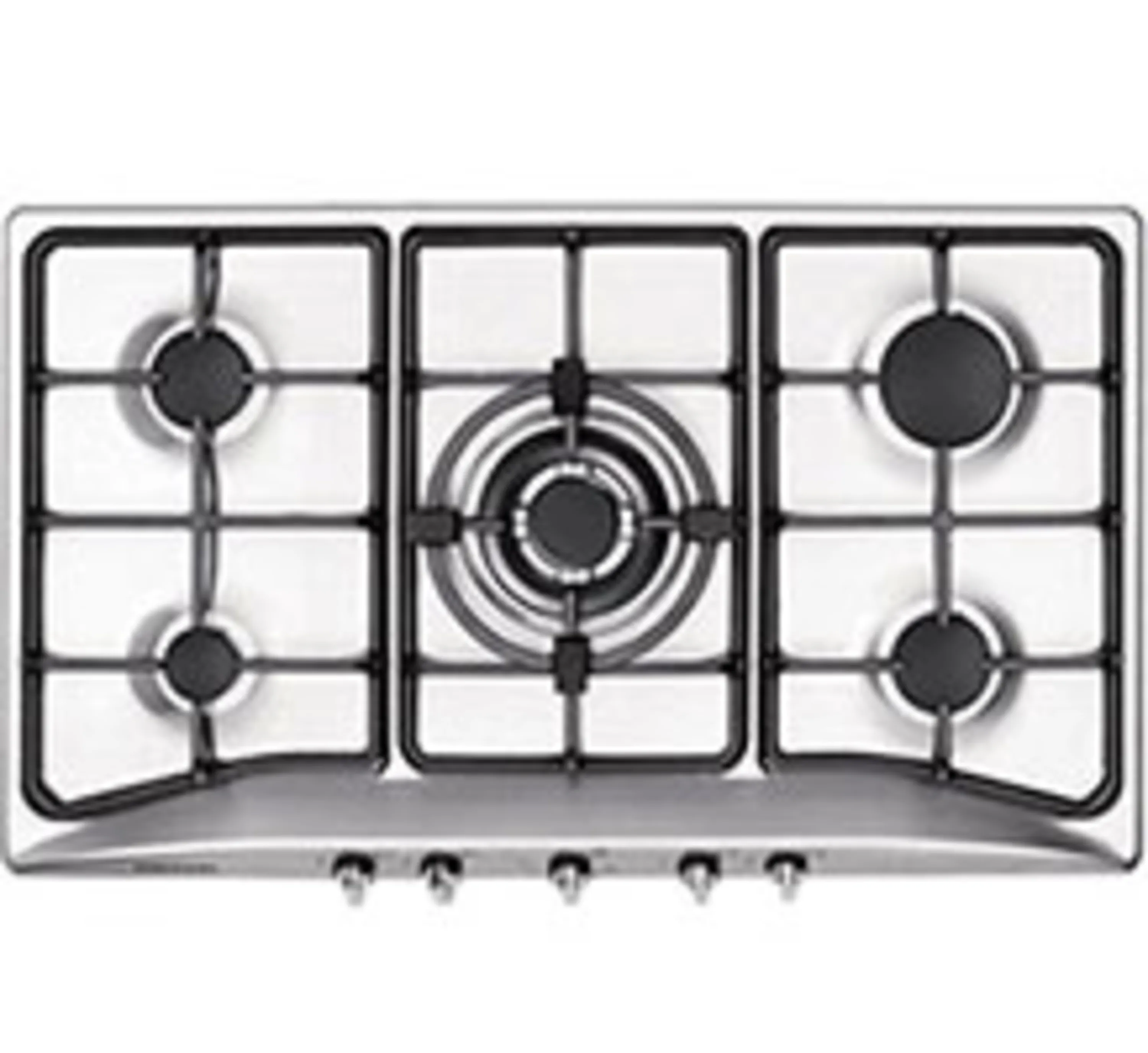 گاز استیل البرز S 5906 با نمای استیل و دارای 5 شعله به همراه شعله پلوپز وسط این اجاق گاز دارایی قطعات اصلی ساخت کشور ایتالیا میباشد