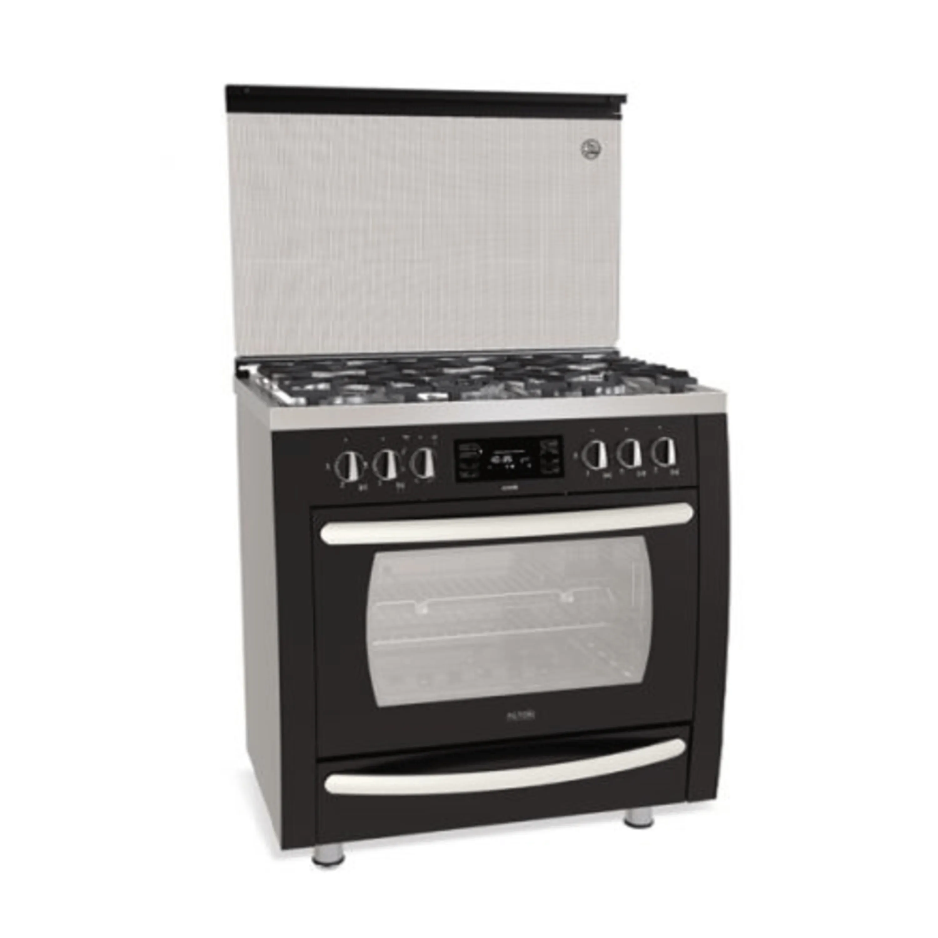 اجاق گاز فردار 5 شعله آلتون ( ALTON ) مدل D5B مشکی رویه استیل با شیشه فر محدب، دارای پوشش فر آسان تمیز شونده یا Easy to clean و مجهز به پنل کنترل لمسی و فن کانوکشن