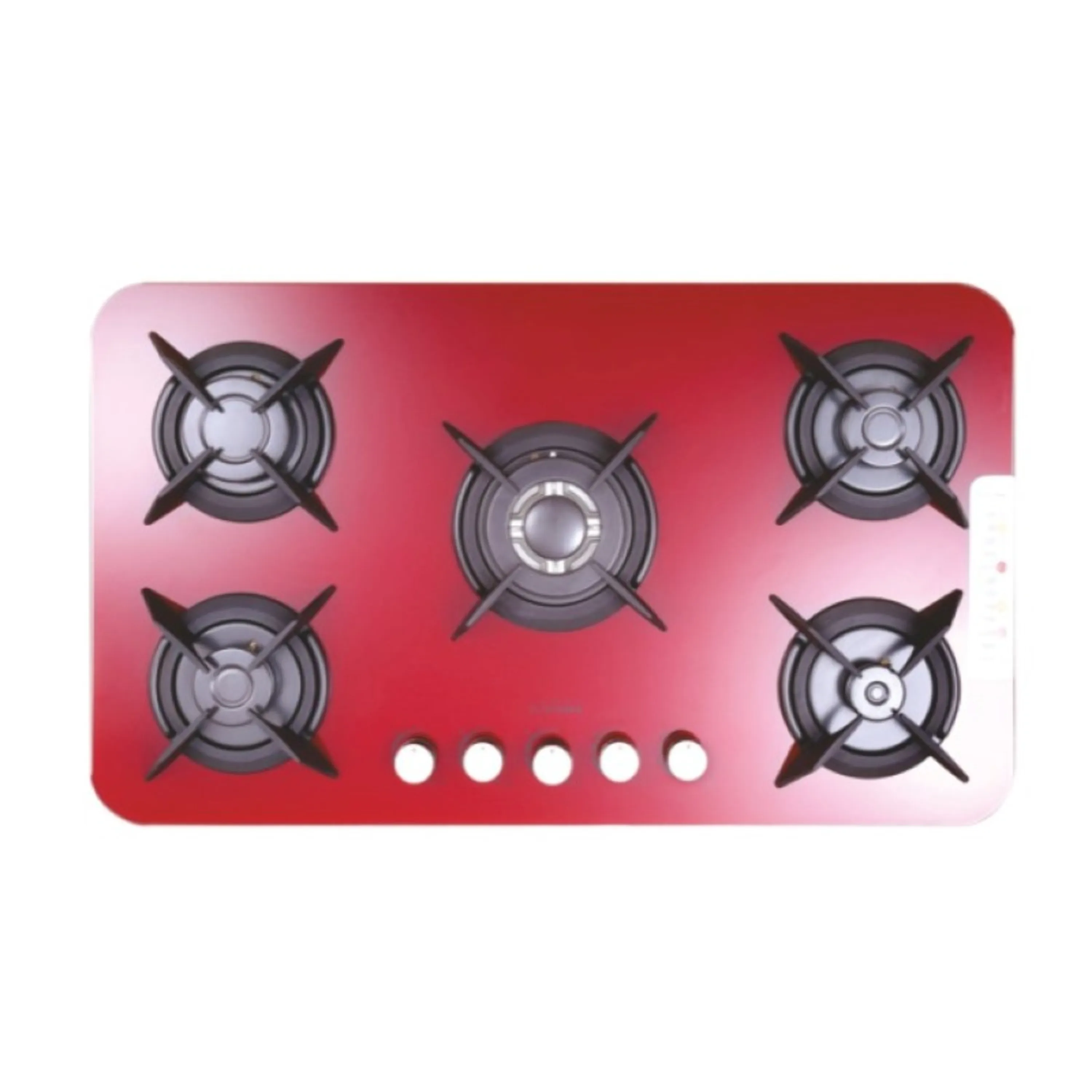 اجاق گاز صفحه شیشه ای کلایبرگ مدل G380، بدنه شیشه ای قرمز رنگ 5شعله با سرشعله های قارچی شکل اندازه 90 سانتیمتر و دارای پلوپز (وک) در وسط صفحه با توان حرارتی پلوپز3.8kw و شبکه چدنی، ترموکوبل TopTime و فندک می باشد .
