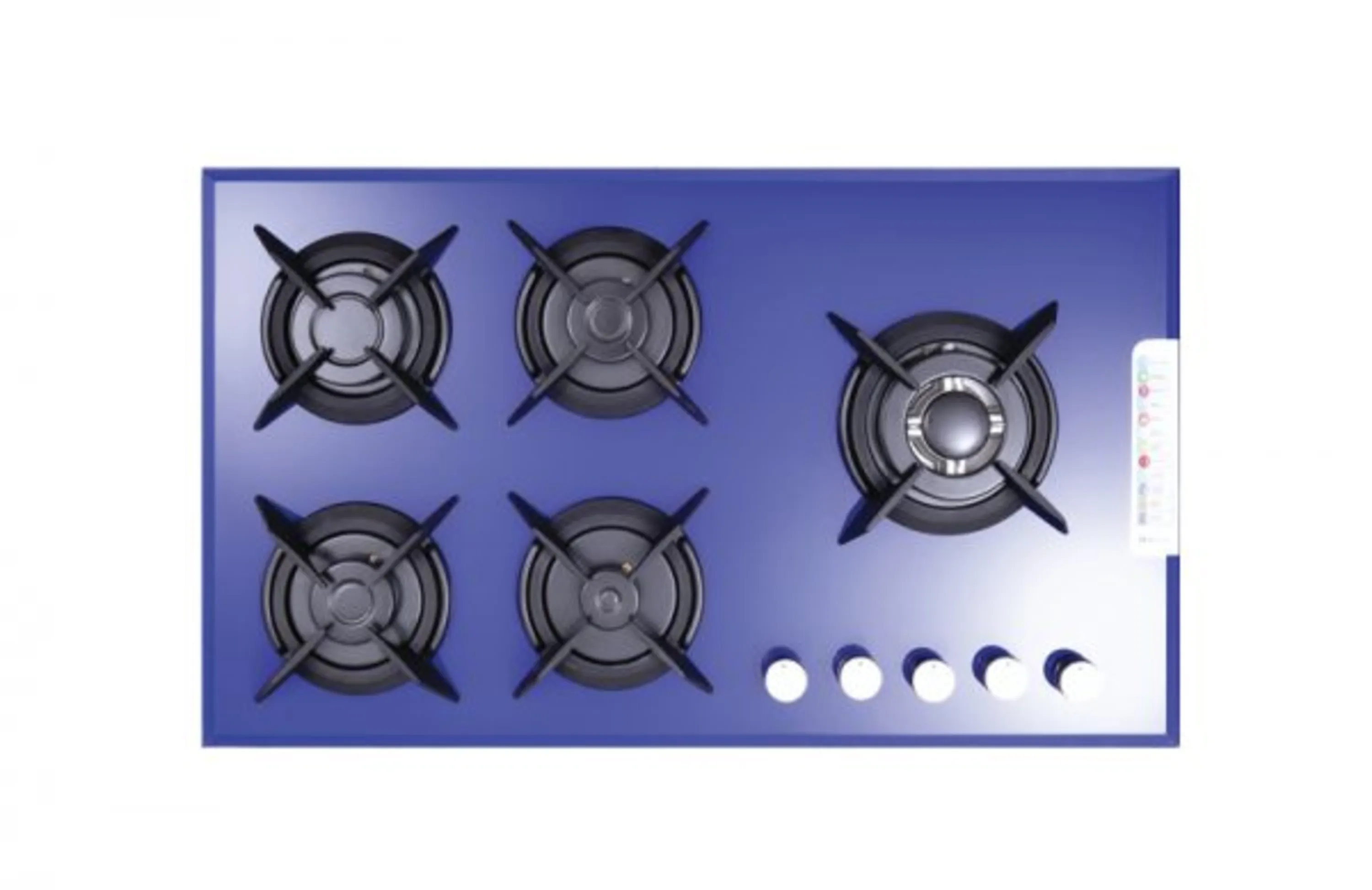 اجاق گاز صفحه شیشه ای کلایبرگ مدل G382، بدنه شیشه ای آبی رنگ 5شعله اندازه 90 سانتیمتر و دارای پلوپز (وک) در بغل صفحه با توان حرارتی پلوپز3.8kw و شبکه چدنی، ترموکوبل TopTime و فندک می باشد .