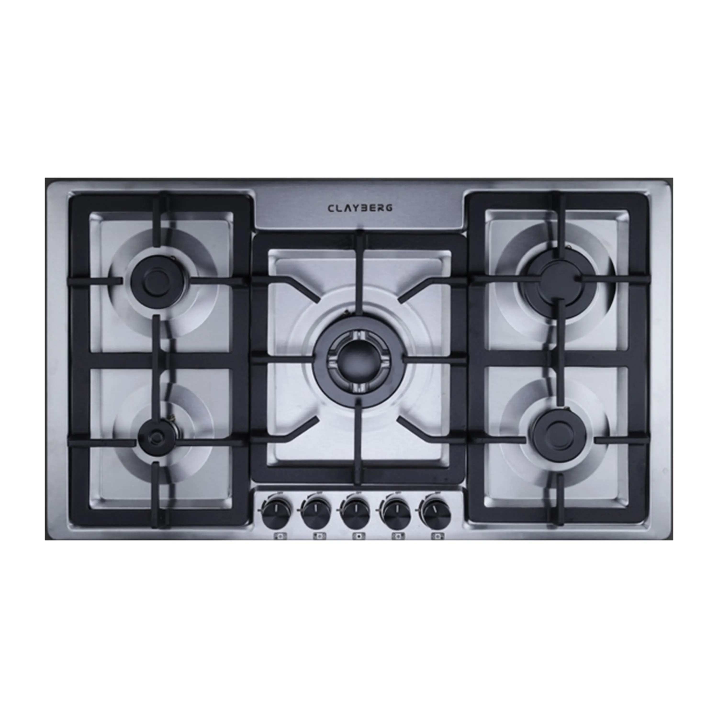 اجاق گاز صفحه استیل کلایبرگ مدل Gerek گریک پنج شعله 86 سانتیمتر و دارای پلوپز (وک) در وسط صفحه و شبکه چدنی، ترموکوبل می باشد .