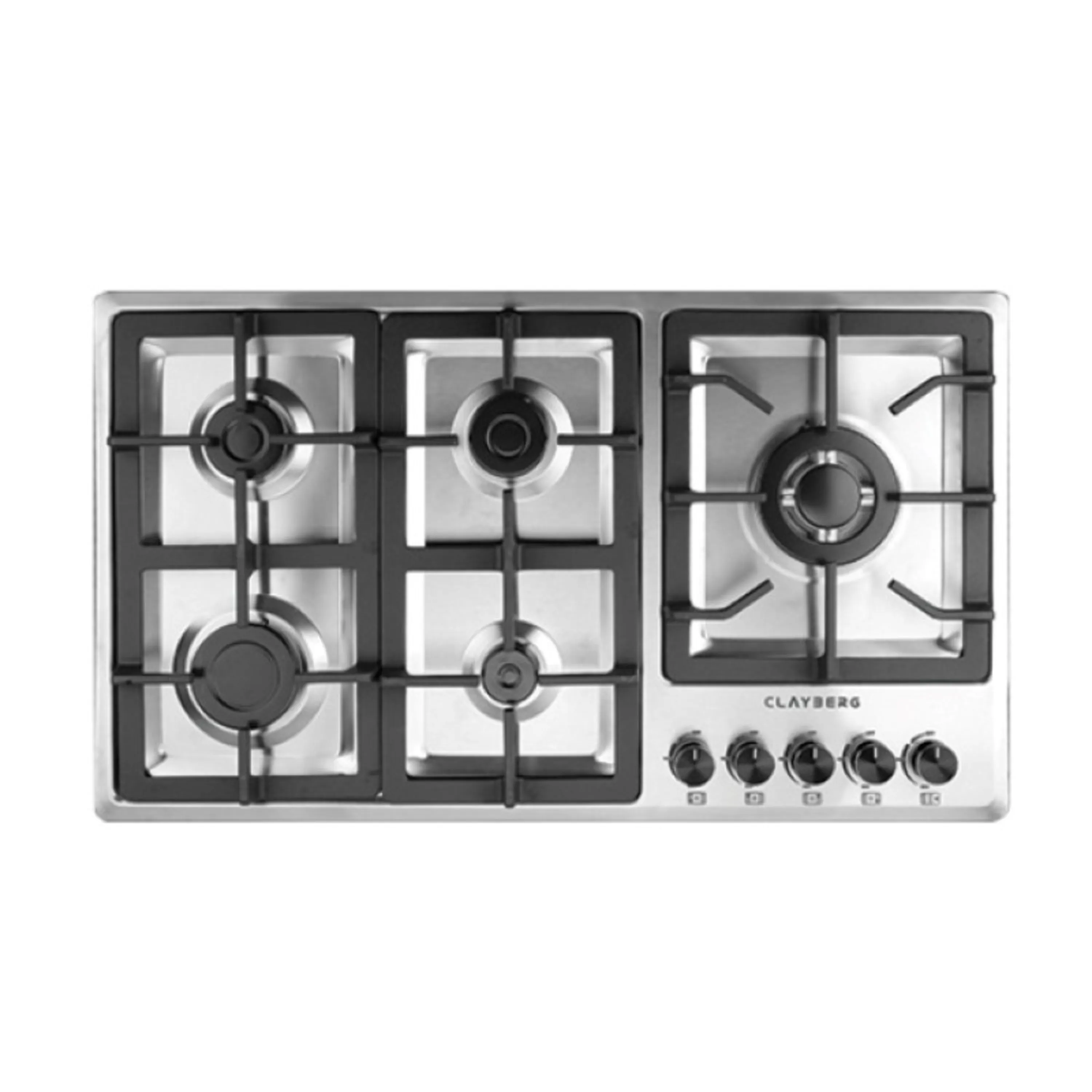 اجاق گاز صفحه استیل کلایبرگ مدل Germin گرمین پنج شعله 86 سانتیمتر و دارای پلوپز (وک) در کنار اجاق سمت راست و شبکه چدنی، ترموکوبل می باشد .