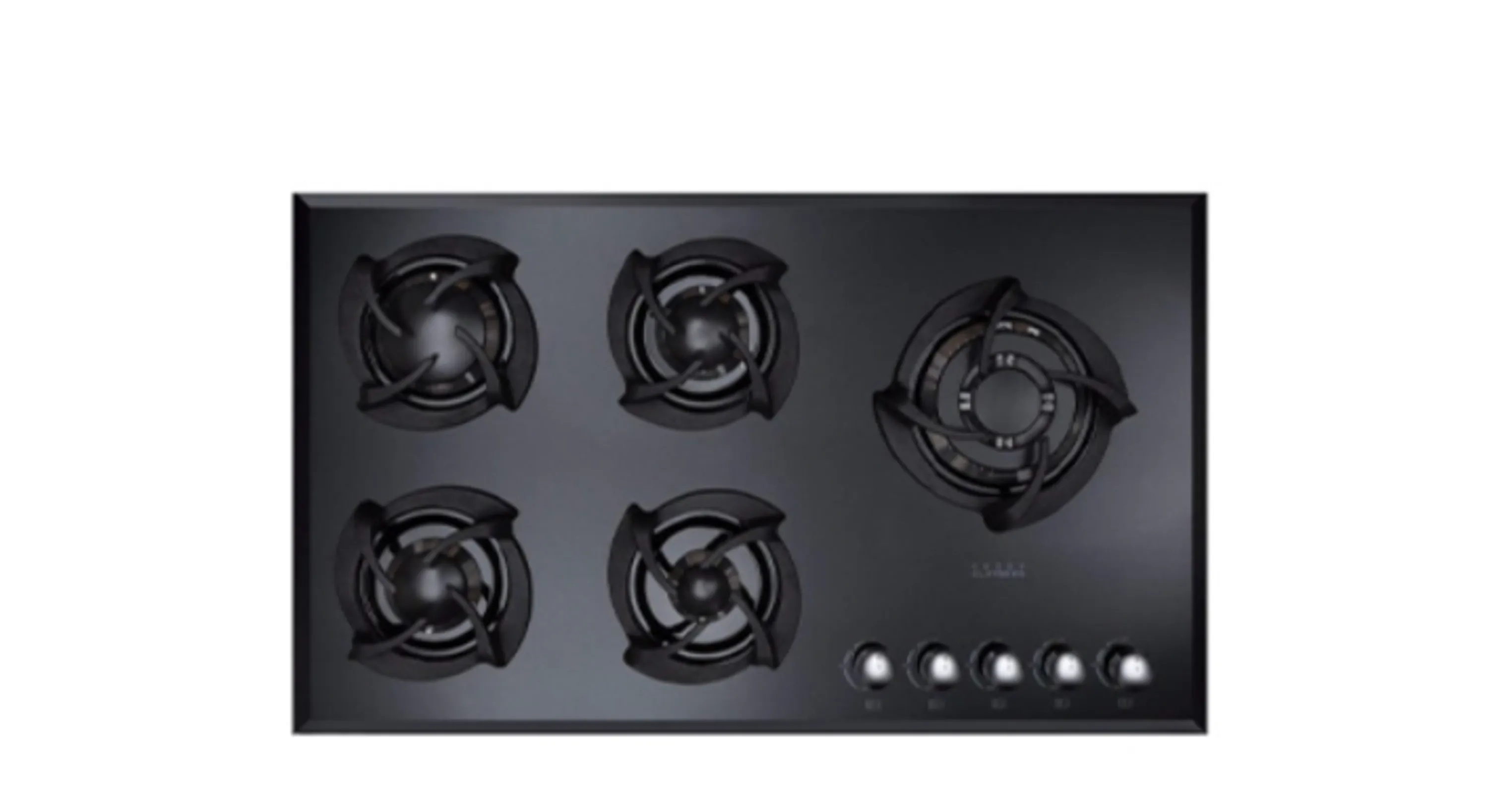 اجاق گاز صفحه شیشه ای کلایبرگ مدل 310 پنج شعله 86 سانتی و دارای پلوپز (وک) در کنار اجاق سمت راست و شبکه چدنی، ترموکوبل می باشد .