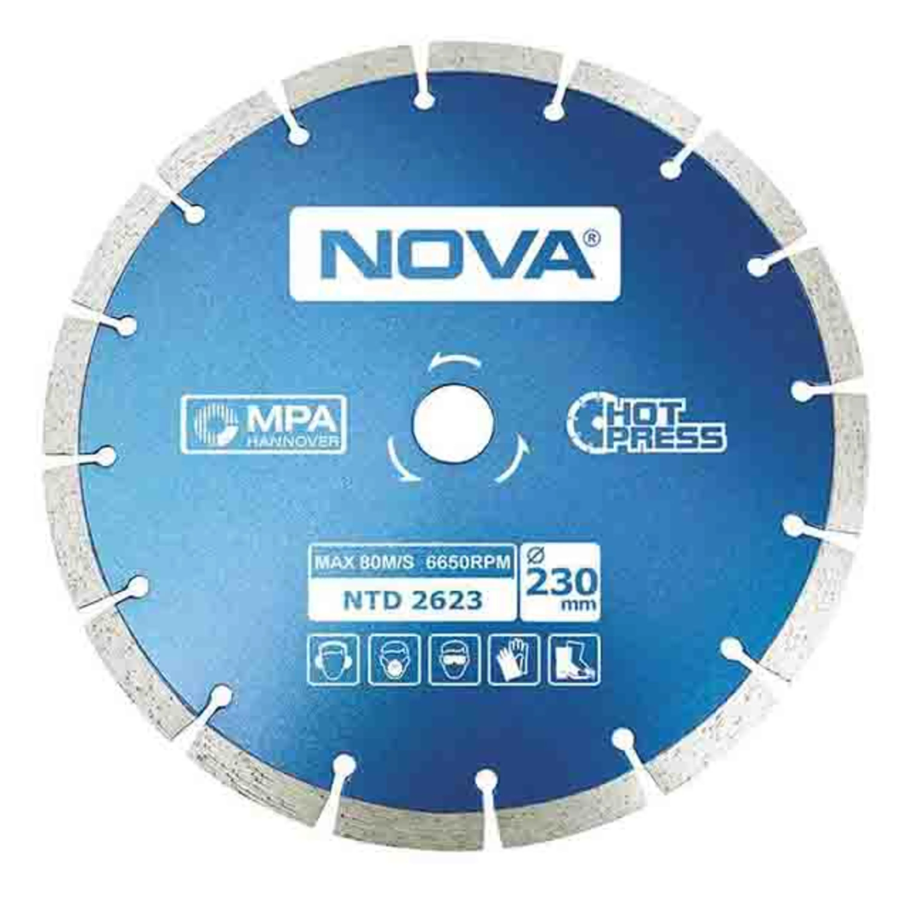 این تیغه برای برش اجسام بسیار سخت به کار میرود. شاید در نگاه اول لبههای این تیغه، چندان تیز به نظر نرسد اما جنس بسیار محکم و مناسب تیغههای این محصول در کنار حرکت چرخشی بسیار تند دستگاه فرز، باعث میشود تا برش بهآسانی انجام شود. سازندهی این صفحهی برش، یک شرکت داخلی به نام «نووا» (Nova) است. صفحهی فرز مدل NTD 2623 صفحهی برشی است که برای برش گرانیت و مصالح به کار میرود. این صفحه که روی دستگاههای فرز بسته میشود، توانایی تحمل سرعت گردش تا 6650 دوربردقیقه را دارد. قطر این صفحه 230 میلیمتر و ضخامت آن 2٫5 میلیمتر است. در نظر داشته باشید که قطر سوراخ مرکزی این صفحه، 22 میلیمتر در نظر گرفتهشده و برای دستگاههای فرز (غیر از مینیفرز) به کار میرود.