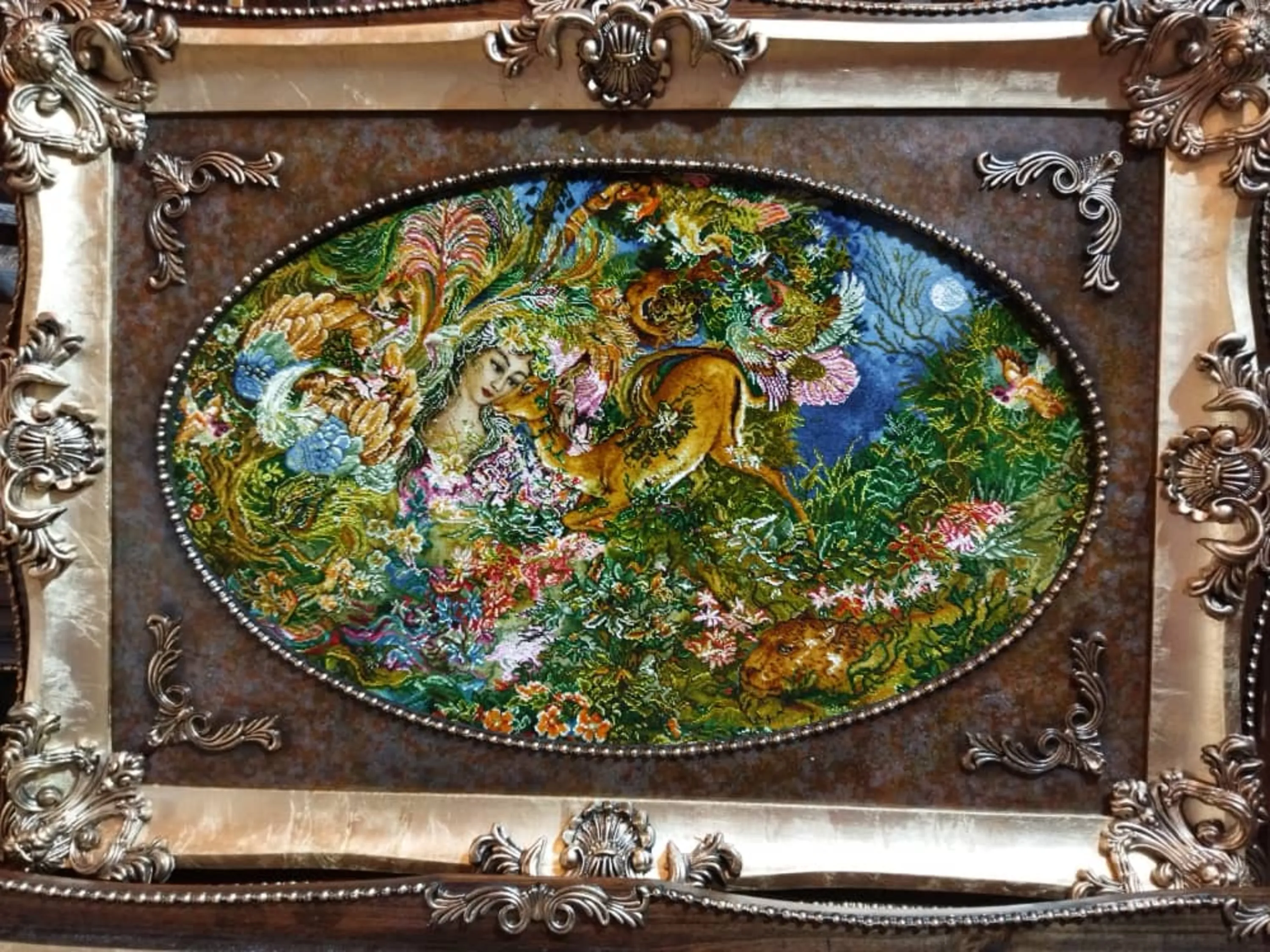 تابلو فرش مینیاتور دایره هستی از اثار استاد فرشچیان اندازه بدون قاب 90/60