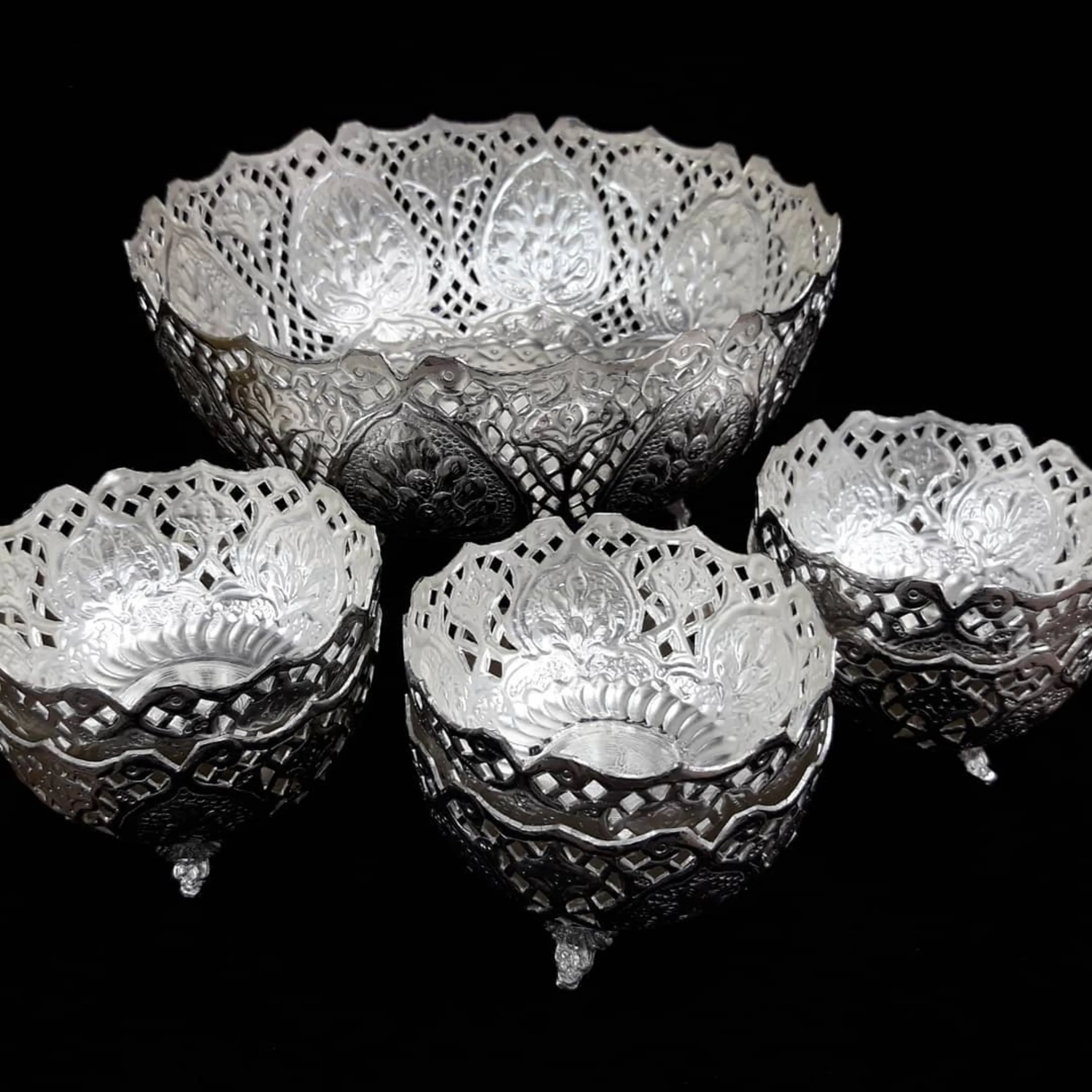 اجیل خوری کامل هفت تیکه سه پایه قلم گل و بوته شبکه اب نقره
