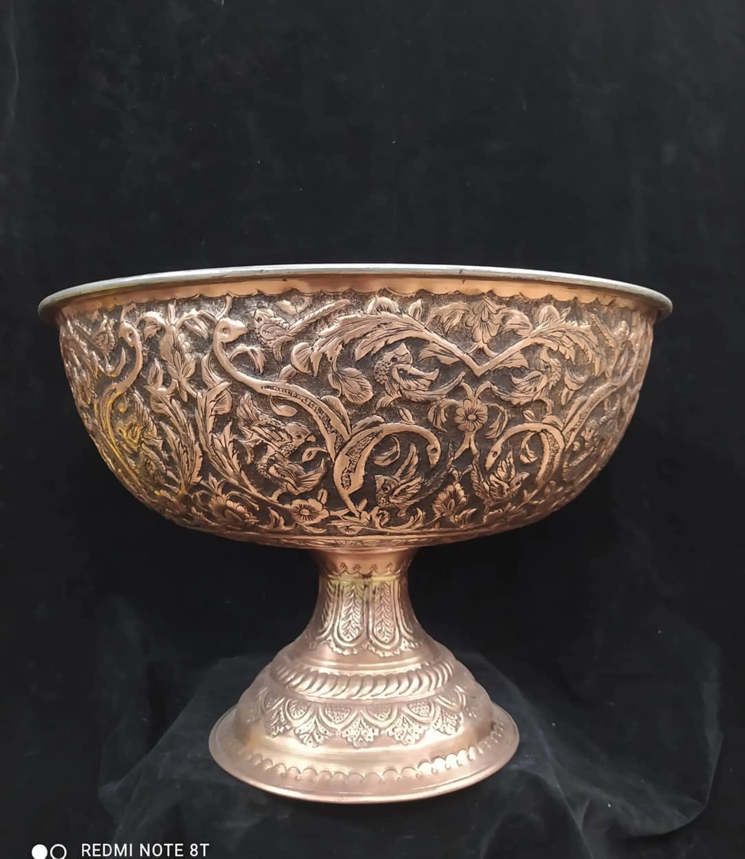 کاسه دهنه42سانتی کعب کوتاه قلم گل مرغ مسی پرداخت شده