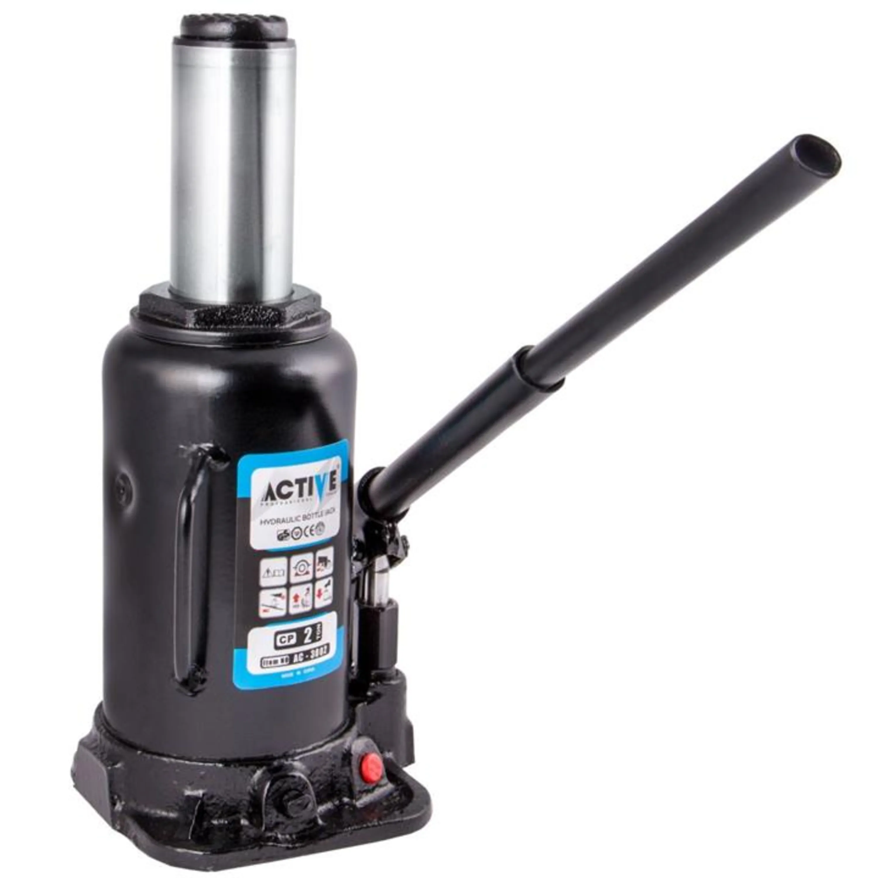 جک روغنی 2 تن برند اکتیو مدل AC3002 قابلیت بلند نمودن اجسام سنگین تا وزن 2 تن (عموما خودروهای سواری سبک و نیمه سنگین) را دارد.از این جک عمدتا جهت بلند نمودن خوردو استفاده میشود. این جک دارای اهرم کمکی مقاوم و با استحکام است تا جهت بالا بردن ارتفاع بتوان از آن به آسانی استفاده نمود. این جک هیدرولیک در حالت جمع شده ارتفاعی برابر 18 سانتیمتر دارد و حداکثر ارتفاع آن به 30 سانتیمتر میرسد. رنگ روکش بدنه از رنگ کورهای پودری به شیوه الکترواستاتیکی جهت جلوگیری از زنگ زدگی و آسیب به بدنه است. همچنین پیستونهای سیلندر این جک پولیش شده و آبکاری شده با کروم و نیز دیوارههای داخلی سیلندر پولیش شده تا سائیدگی دستگاه به حداقل برسد و طول عمر دستگاه افزایش یابد. این دستگاه دارای استانداردهای کیفیتی مختلفی از قبیل ce ، TUv ، ISO9001 و غیره است تا به خریدار اطمینان خاطر جهت خرید محصولی با کیفیت را بدهد.