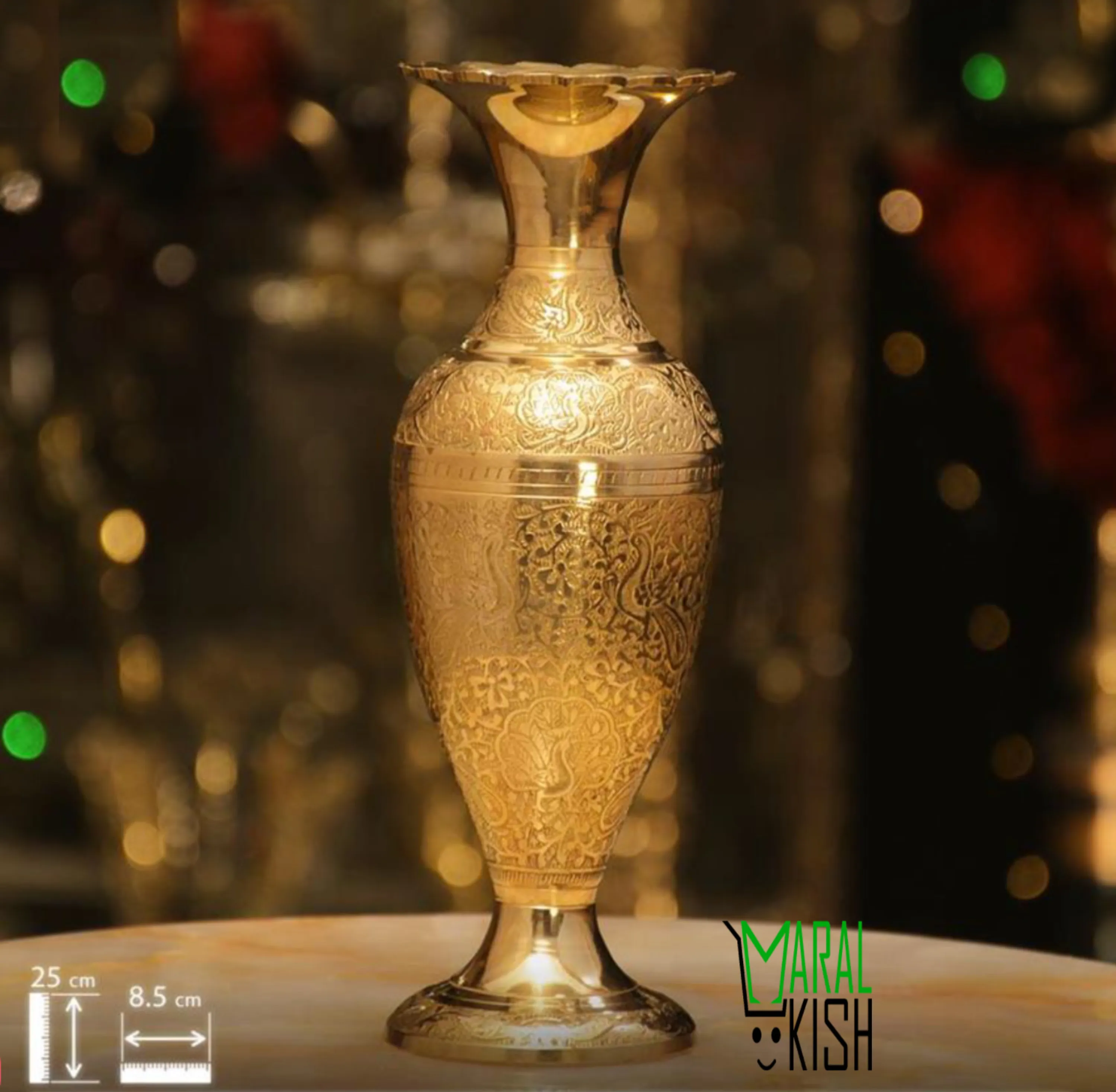 گلدان قلم طاووس لبه هلالی 25 سانت از جنس برنج مناسب برای دکوراسیون و هدیه به دوستداران صنایع دستی خاص