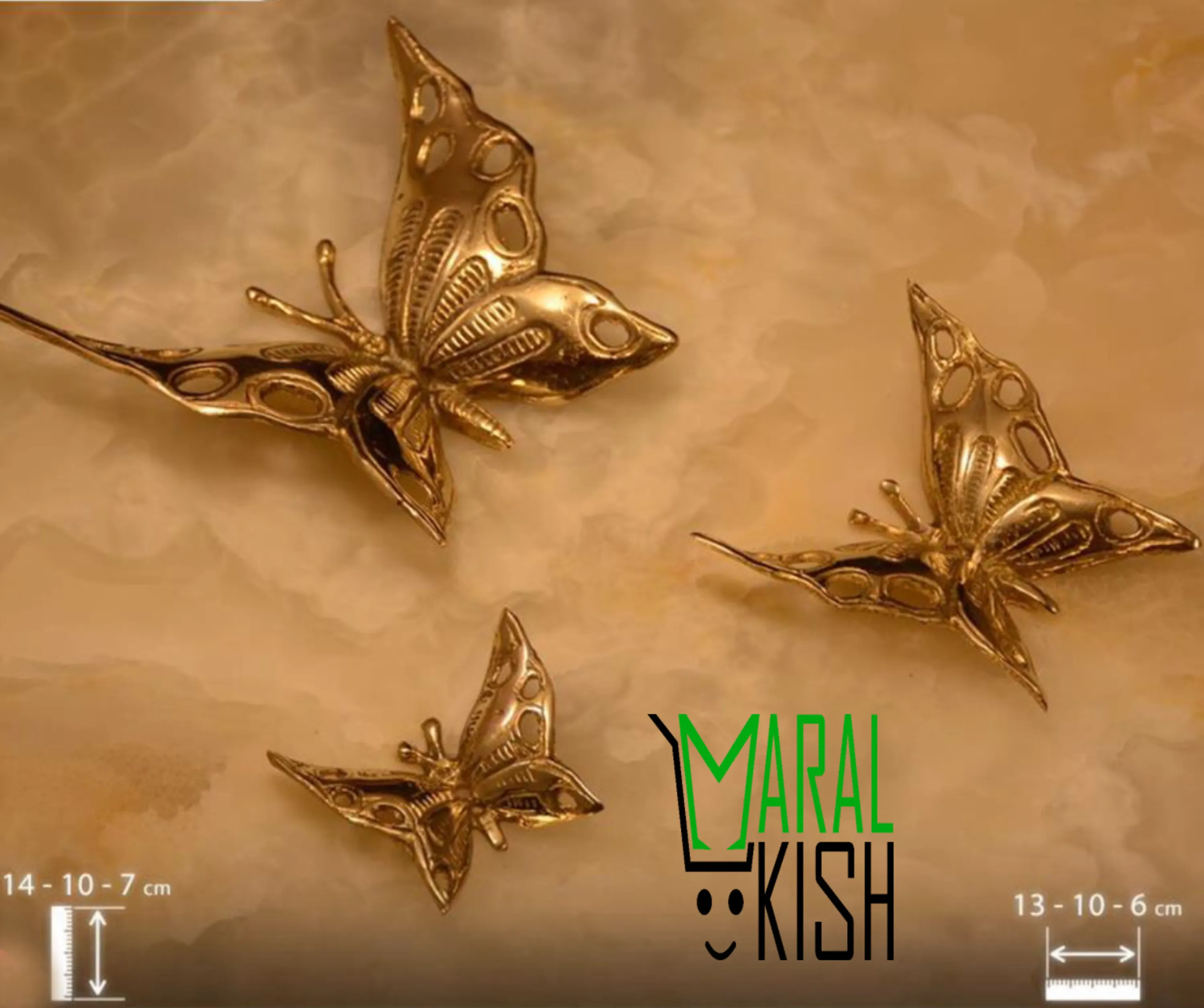 پروانه سه تایی ریختگی تولید شده توسط شرکت زرین برنز، با ظاهری ذشیک برای تزئین خانه و ب عنوان دیوار کوب