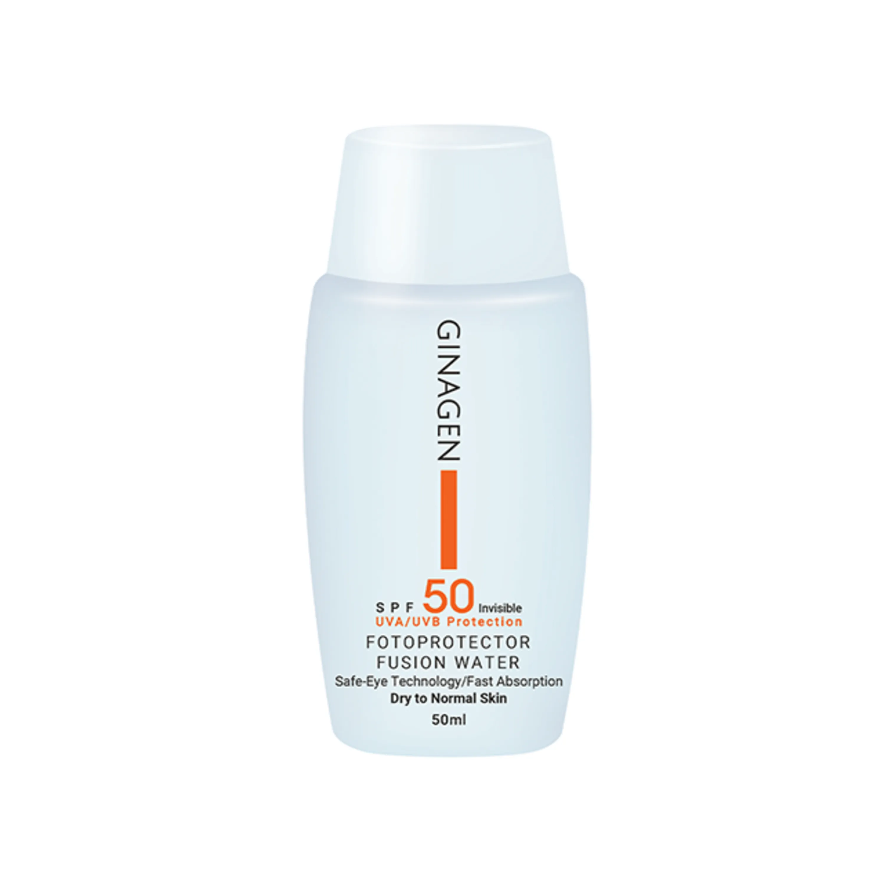کرم ضد آفتاب بی رنگ پوست معمولی تا خشک با Ginagen SPF50، دارای فاکتور محافظتی Spf50 و فرمولاسیون سازگار با دمای پوست میباشد. کرم ضد آفتاب فیوژن واتر ژیناژن به خوبی از پوست در برابر اشعههای مضر UVB-UVA محافظت میکند. این کرم حاوی ویتامین E است که به عنوان ضد چروک و آنتی اکسیدان برای پوست عمل میکند. ترکیبات ضد آفتاب ژیناژن فاقد الکل بوده و در برابر آب و تعریق مقاوم است.