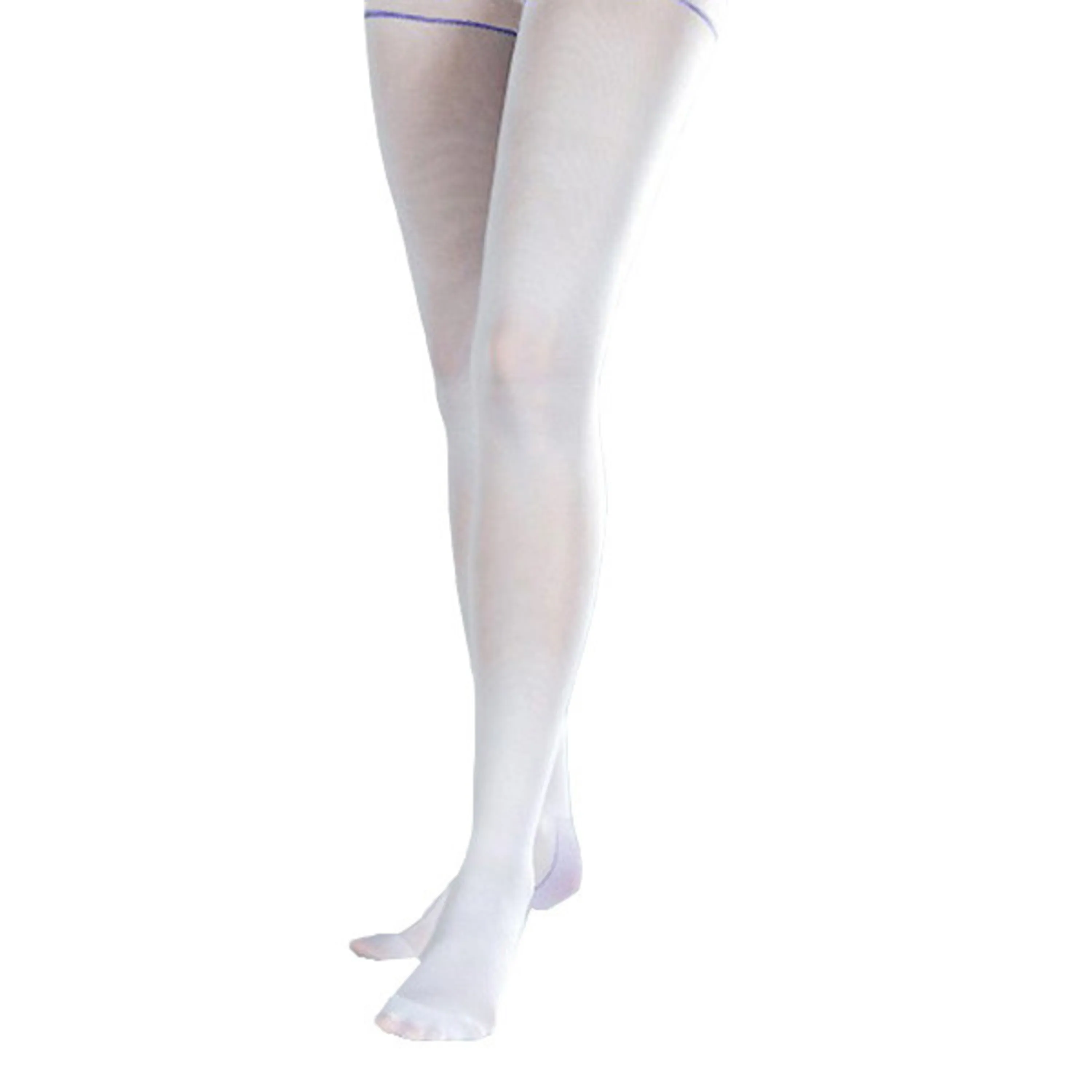 این جوراب در قسمت انتهای ران دارای نواری از جنس سیلیکون جهت جلوگیری از سر خوردن و پایین آمدن جوراب است.
