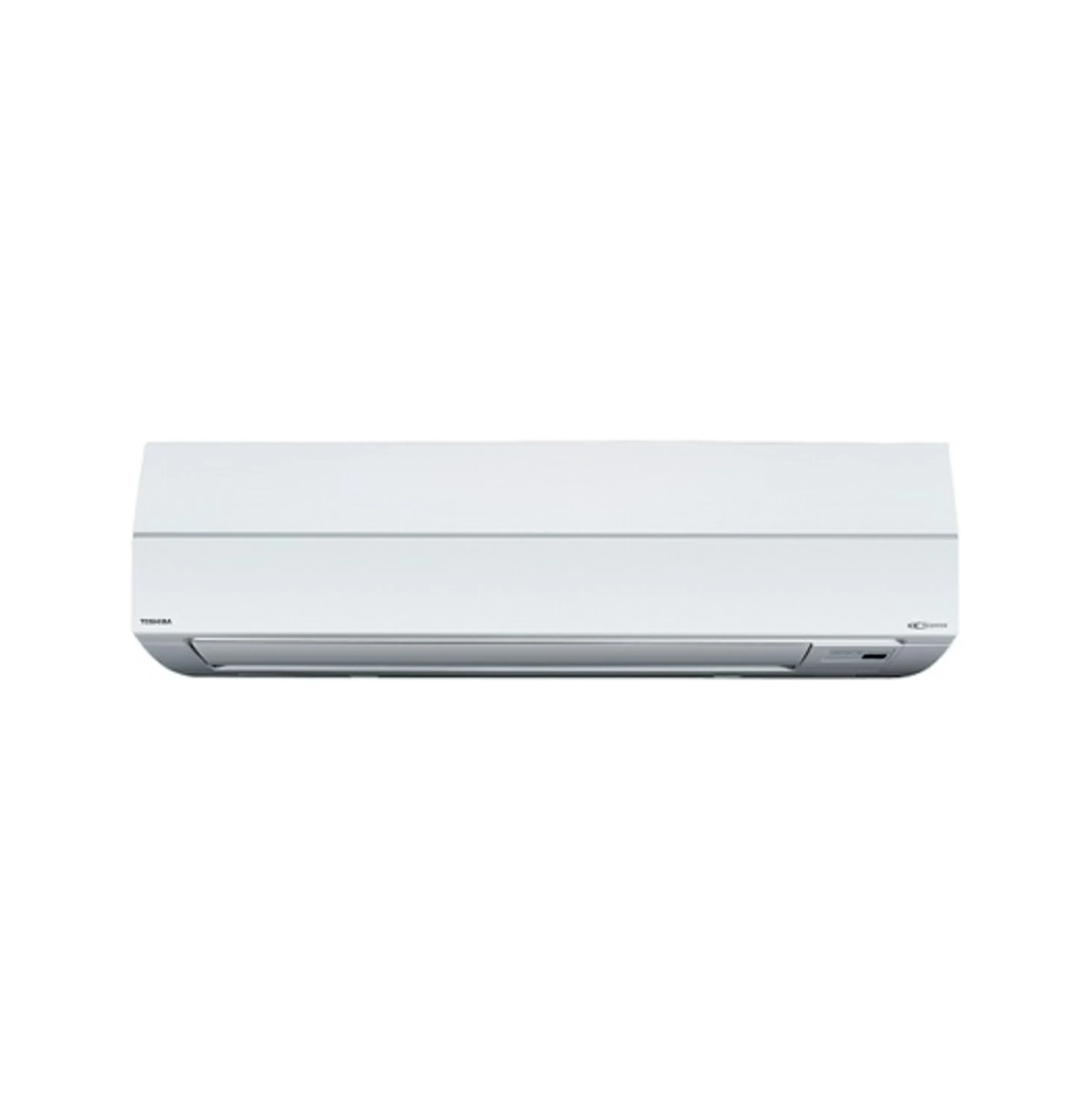 یونیت داخلی این اسپلیت دیواری توشیبا با ابعاد 32 × 105 × 24.3 سانتی متر و وزن تقریبی 13 کیلوگرم، رنگ بدنه سفید و شکل مستطیلی ساده و شیک طراحی شده که نشانگرهای روی بدنه آن به عنوان راهنمایی برای شما عمل می کنند و در زیر دریچه افقی، پره ها قرار گرفته اند که گفتیم در دو حالت swing و airflow قابلیت تغییر جهت را دارند. این مستطیل سفید رنگ زیبا اجزای مختلفی دارد که هنگام خرید اسپلیت، باید به آن ها توجه شود. نشانگرهای روی سمت راست کولر شامل HI POWER، فیلتر،PRE.DEF، TIMER و OPERATION می باشند که برخی از این توابع را می توان بر روی ریموت کنترل سفید رنگ نیز مشاهده کرد. در کنار این، واحد کندانسور کولر نیز ابعادی معادل با 29 × 78 × 71.5 سانتی متر دارد و در وزن 56 کیلوگرم قابل جایگذاری بر روی پشت بام یا هر مکان دیگری می باشد.