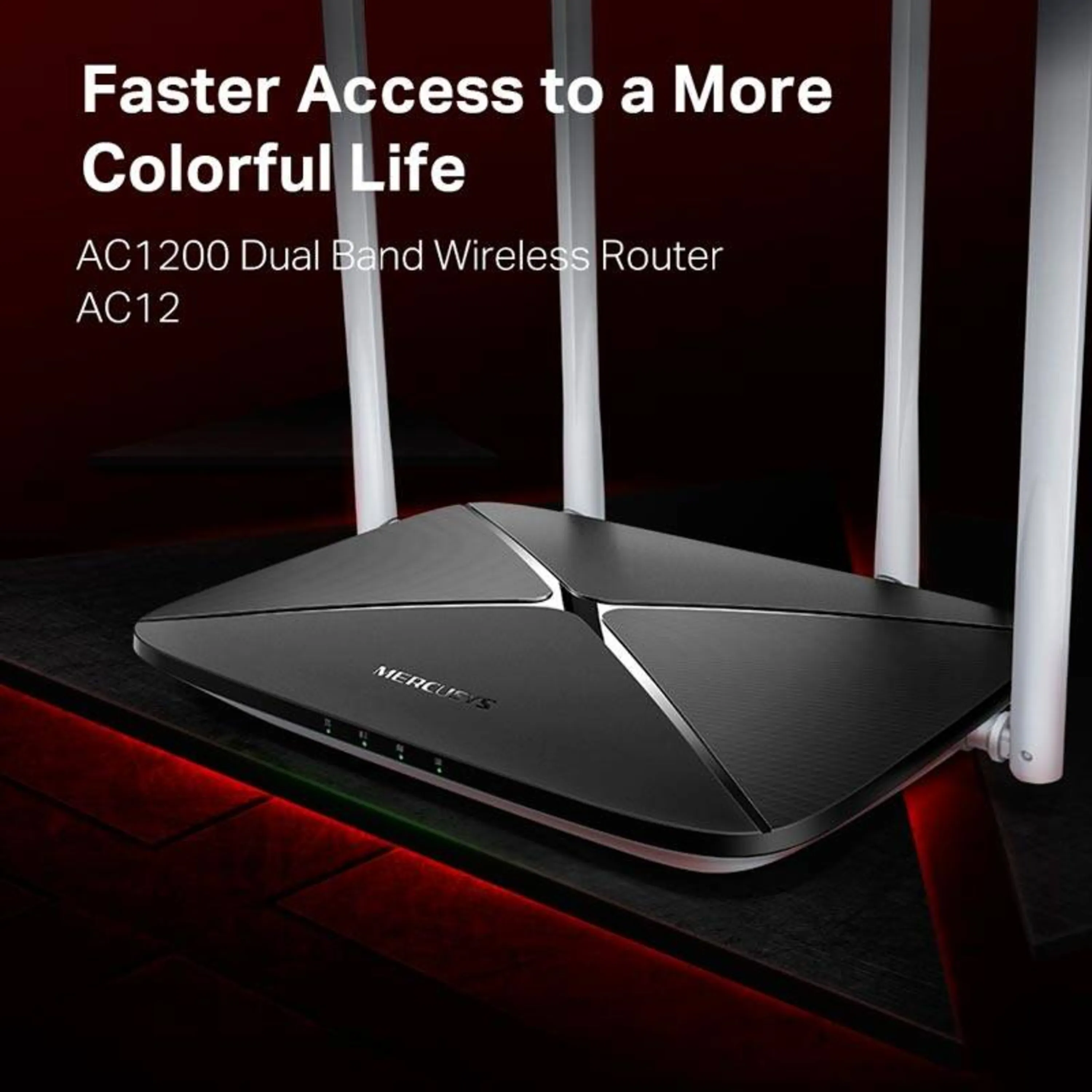 بر روی این روتر 4 آنتن Mercusys AC12، دکمه پاور دستگاه، دکمه ریست و کلید WPS تعبیه شده است. WPS امنیت در رمزگذاری دستگاه را قوی تر خواهد کرد تا از هک پسورد و استفاده از حجم اینترنت توسط دیگران جلوگیری شود. امنیت بی سیم این دستگاه از طریق رمزگذاری WPA-PSK / WPA2-PSK پشتیبانی می شود که از شبکه وای فای در برابر تهدیدات امنیتی و ورود مزاحمان محافظت کرده و یک دیوار دفاعی محکمی را به وجود خواهد آورد. در پشت روتر یک سری درگاه های خروجی برای اتصال شبکه و دیگر دستگاه ها تعبیه شده که شامل 3 عدد پورت اترنت LAN و 1 عدد پورت اترنت WAN است. نشانگرهای LED نیز بر روی بدنه دستگاه قرار دارند که وضعیت اتصال و برقراری اینترنت را نشان می دهند. یک سری فناوری برای کنترل مدیریت آسان تر برای این دستگاه بی سیم WiFi فراهم شده مانند Guest Network Access که دسترسی Wi-Fi را برای مهمانان به صورت شبکه ای در خانه یا دفتر کار به اشتراک می گذارد و پروتکل IPv6 که بهره وری از شبکه و سرعت بالا در مشاهده وب سایت ها و پخش آنلاین را بهینه سازی می کند.
