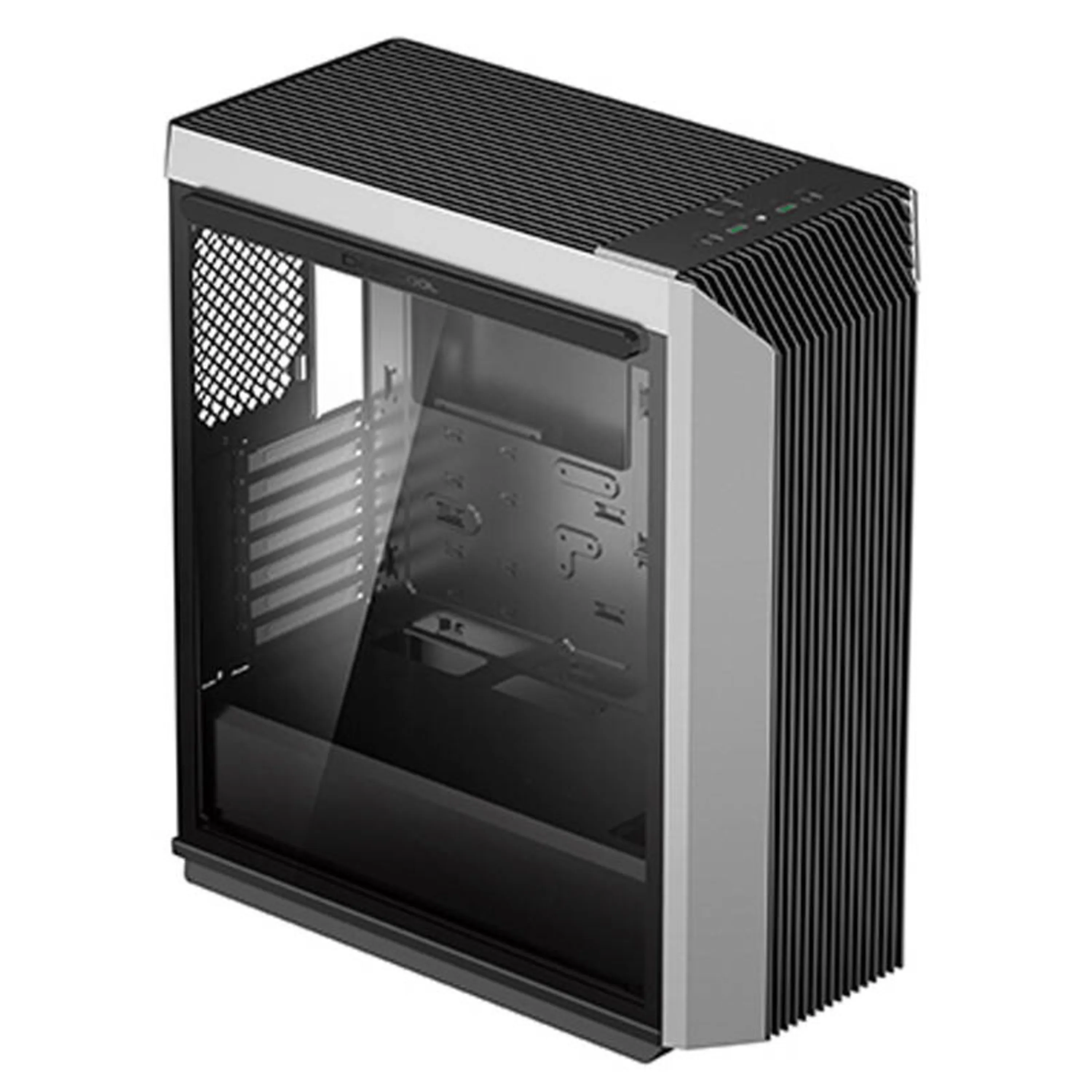 پنل جلو با طراحی سبک مشبک و پنل کناری به صورت پنجره ای از جنس شیشه فشرده و مقاوم بالا جهت نمایش قطعات داخلی نصب شده در کیس
