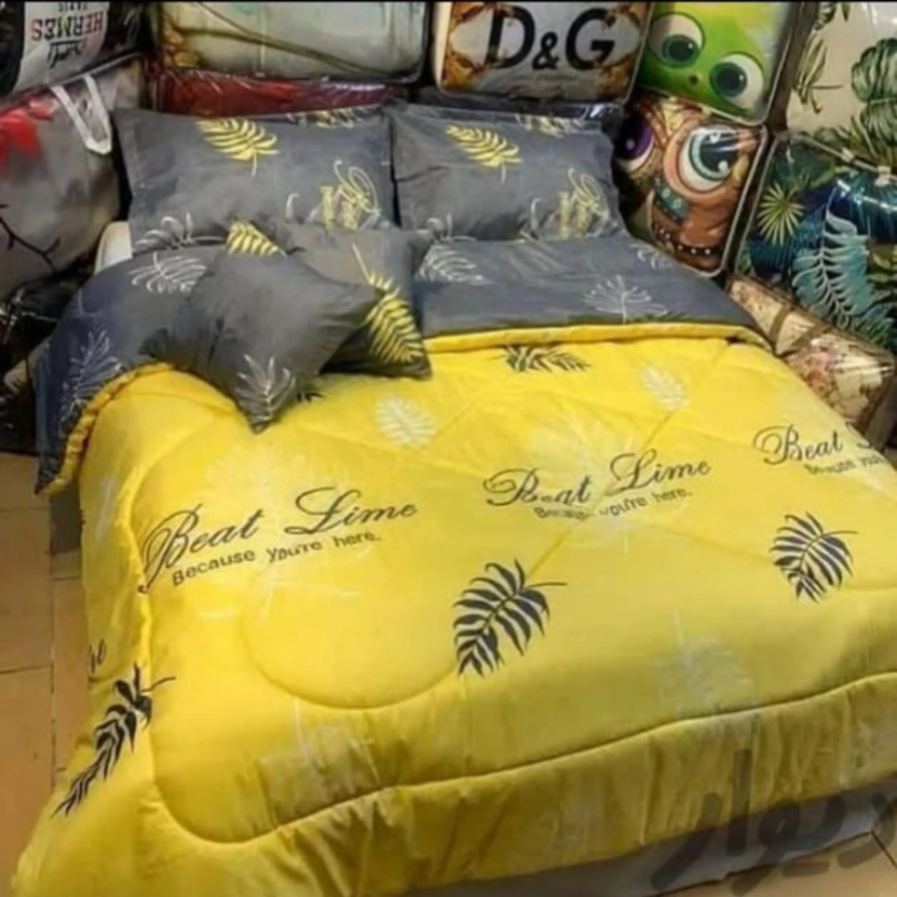1 عدد رو بالشتی. 1 عدد رو کوسن. 1 عدد لحاف 4 طرف کش برای خوشخواب. 1 عدد لحاف رو انداز.